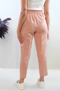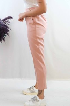 Moda Çizgi Düğme Aksesuarlı Yüksek Bel Pantolon Pudra