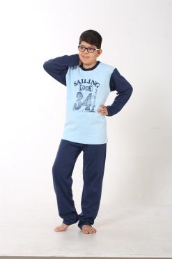 Moda Çizgi Erkek Çocuk Buz Mavisi Penye Pijama Takım 4508