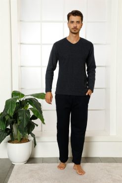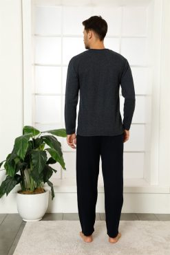 Moda Çizgi Erkek %100 Pamuk Cepli Uzun Kollu Pijama Takımı