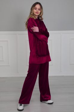 Kadife Takım Eşofman,Vişne Çürüğü,TK-1