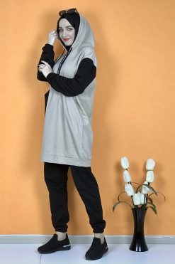 Yeni sezon tesettür moda ürünüdür.Ürünümüz iki iplik kumaştan üretilmiştir. Uzun kolludur . Ürünümüz de tek cep bulunmaktadır. .Eşofman altı paçası lastiklidir. 4 Mevsim kullanıma uygundur.