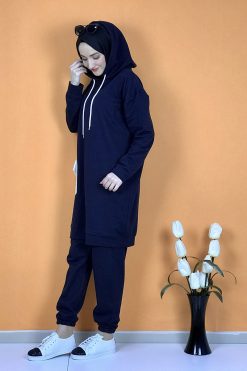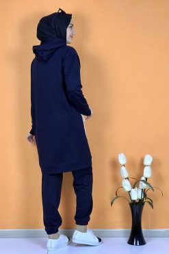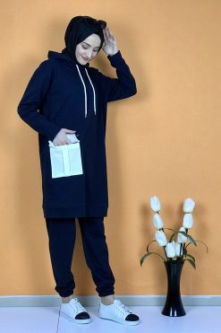 Yeni sezon tesettür moda ürünüdür.Ürünümüz iki iplik kumaştan üretilmiştir. Uzun kolludur . Ürünümüz de tek cep bulunmaktadır. .Eşofman altı paçası lastiklidir. 4 Mevsim kullanıma uygundur.