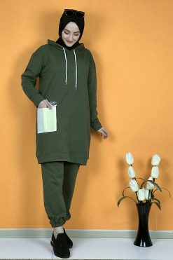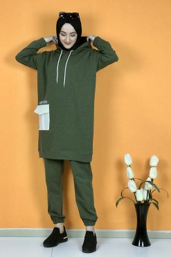 Yeni sezon tesettür moda ürünüdür.Ürünümüz iki iplik kumaştan üretilmiştir. Uzun kolludur . Ürünümüz de tek cep bulunmaktadır. .Eşofman altı paçası lastiklidir. 4 Mevsim kullanıma uygundur.