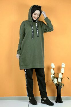 Yeni sezon tesettür moda ürünüdür.Ürünümüz iki iplik kumaştan üretilmiştir. Uzun kolludur . Eşofman altı paçası lastiklidir. 4 Mevsim kullanıma uygundur.