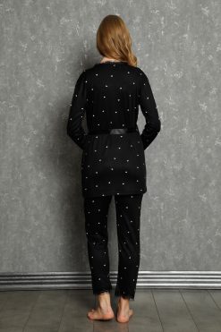Moda Çizgi Kadın %100 Pamuk 3’lü Sabahlık Pijama Takım