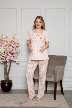 Moda Çizgi Kadın %100 Pamuklu Hamile Pijama Takımı 4507
