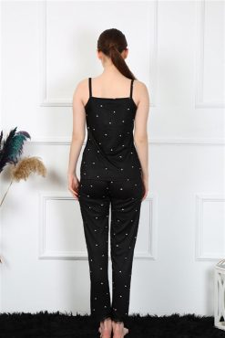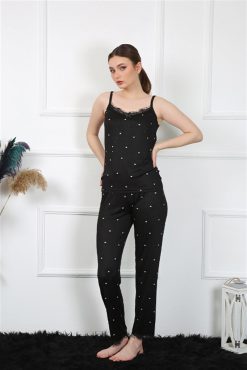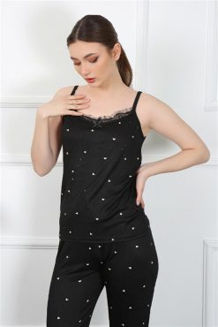 Moda Çizgi Kadın İp Askılı Siyah Pijama Takım 4138