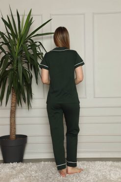 Moda Çizgi Kadın %100 Pamuk Önden Düğmeli Kısa Kol Pijama Takım
