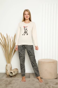 Akbeniz Kadın %100 Pamuk Penye Uzun Kol Pijama Takım