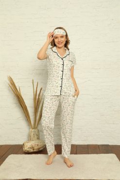 Moda Çizgi Kadın %100 Pamuk Önden Düğmeli Kısa Kol Pijama Takım