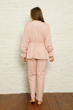 Moda Çizgi Kadın %100 Pamuk Penye Pileli Pijama Takım