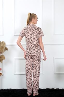 Moda Çizgi Kadın Pudra Önden Düğmeli Kısa Kol Pijama Takım 2844
