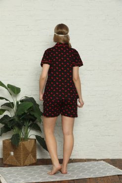 Moda Çizgi Kadın %100 Pamuk Penye Kısa Kol Şortlu Pijama Takım