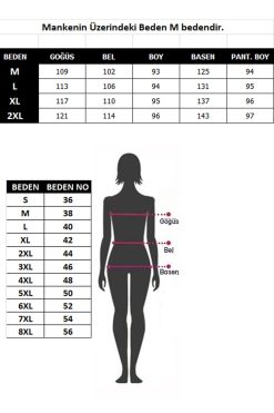 | BEDEN | GOĞÜS | BEL | BOY | BASEN | PANT. BOY |