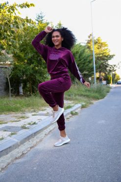 Moda Çizgi Kadın Kadife Eşofman Takım