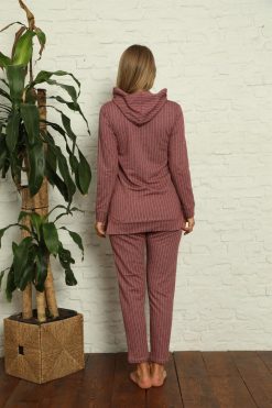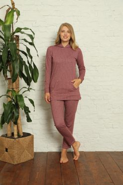 Moda Çizgi Kadın Pamuk Kapşonlu Cepli Eşofman Takım 9026