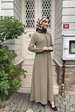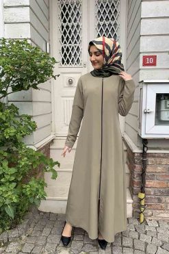 Yeni sezon tesettür moda ürünüdür.Tesettür Giyimi tercih eden bayanların en sık kullandıkları kıyafetlerden biri olan Feraceler, şık görünümleri ile günlük veya özel günlerde kullanımları ile öne çıkıyor. Fermuarlı Ferace ürünümüz, yağ yeşili rengi ile her mevsime uygunluk gösteriyor.