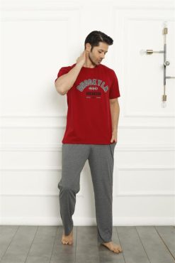 Moda Çizgi Erkek Kırmızı Penye Pijama Takım 20371