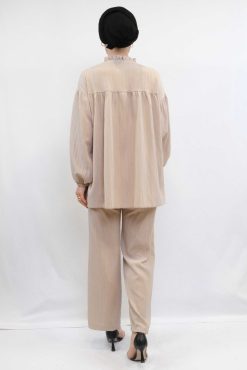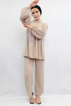 Ürün Alt Pantolon Detay : Pantolon beli lastiklidir, yüksek beldir ve bol paça olarak tasarlanmıştır .