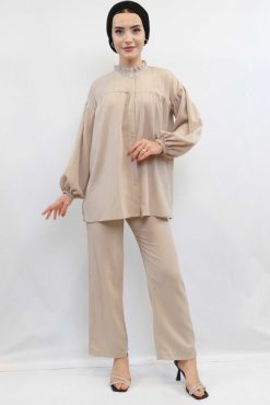 Ürün Marina kumaştan imal edilmiştir üst gömlek ve alt pantolon olmak üzere 2 parçadan oluşturmaktadır